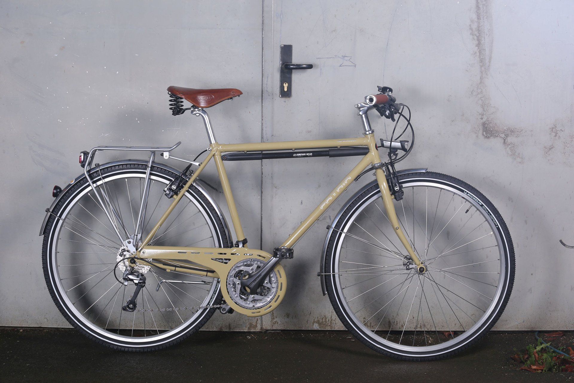 Zur Abwechslung hier mal ein helles Patria in der Farbe "Elfenbein". Ausgestattet mit Rohloffschaltung und einem Kettenschutz lackiert in Rahmenfarbe.
